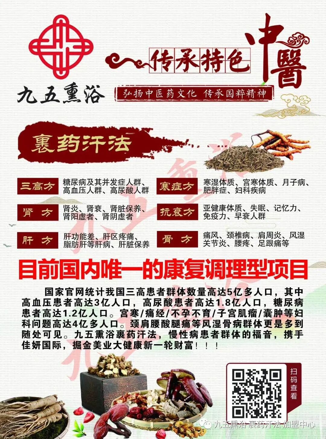 中医院、国医馆、养生馆、美容院2020最火 项目---九五熏浴·裹药汗法,慢性病调理一次见效、疗程调理可康复!!!全国统一加盟热线: 18937671433 (同微信)...